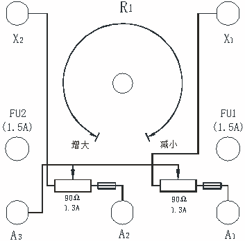 由于實(shí)驗(yàn)的需要,變阻器除了做可變電阻使用外,還可采用電位器接法做分壓器用。例如他勵(lì)直流發(fā)電機(jī)勵(lì)磁電壓調(diào)節(jié)就是采用電位器接法。做分壓器時(shí)可以單只使用,也可以并聯(lián)使用。分壓器接法為: 固定電壓接在A2和X2之間,而可變電壓可以從A3和A2(或A3和A4)端引出。