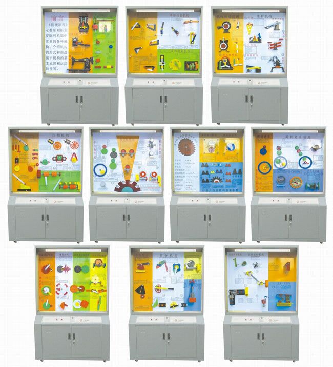 | 第二柜 平面連桿機構的基本形式 | 4、鉸鏈四桿機構 5、曲柄搖桿機構 6、雙搖桿機構7、雙曲柄機構8、曲柄滑塊機構 9、轉動導桿機構 10、擺動導桿機構 11、移動導桿機構12、曲柄移動導桿機構 13、雙滑塊機構14、雙轉塊機構 |